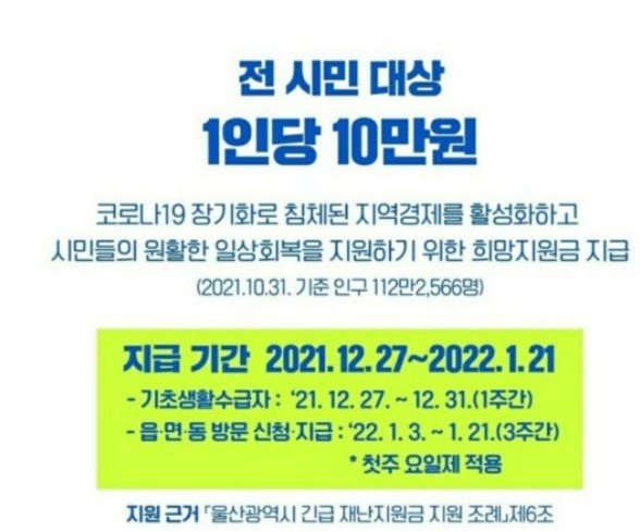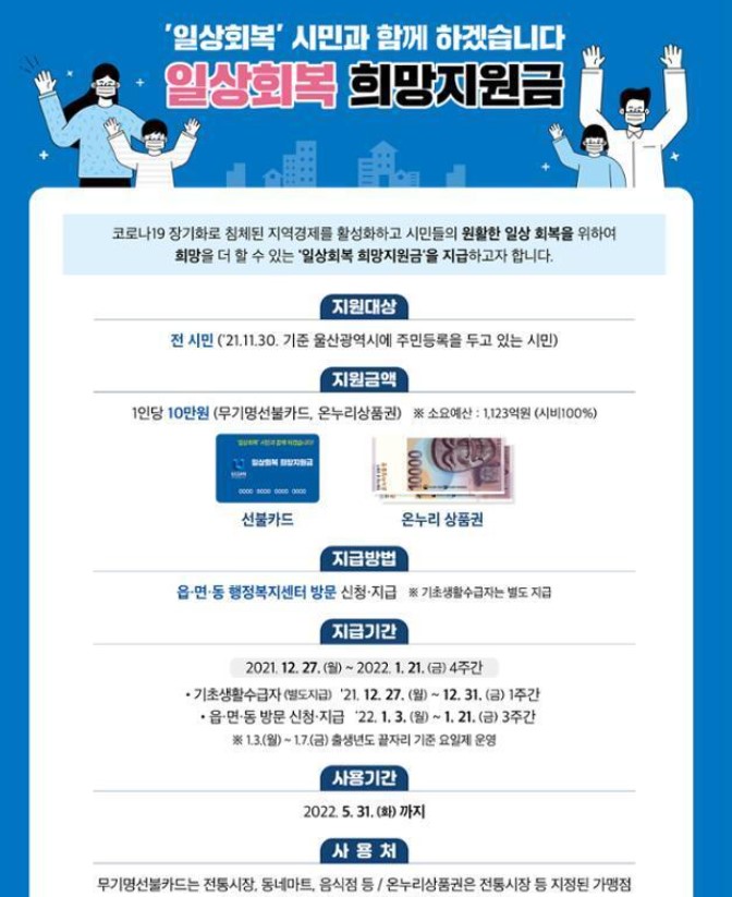 울산시민분들이 받게될 일상회복 희망지원금은